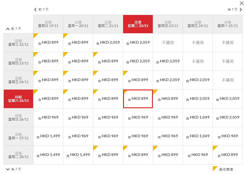台北 HK$560(連稅 HK$899)