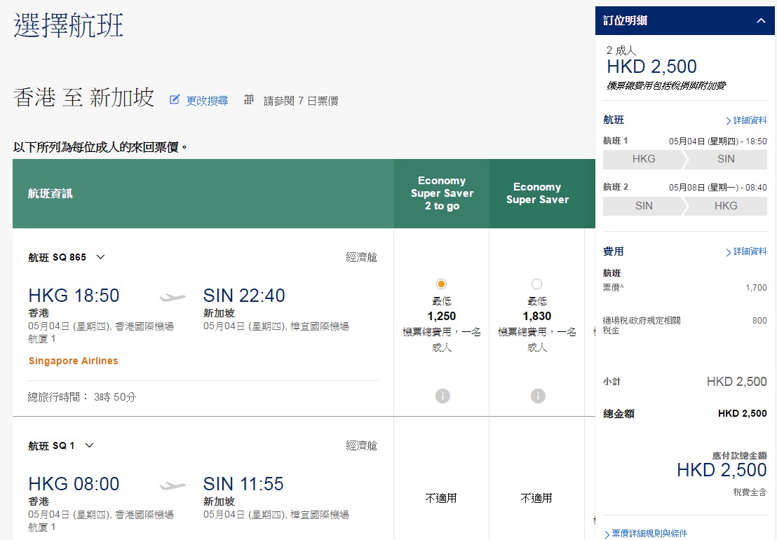 新航官網 出完同東亞優惠後,繼續有「ILOVESQ」優惠。今個星期(即4月6日)有新加坡 HK$850起(連稅HK$1,250;經新加坡轉飛吉隆坡HK$1,050,連稅HK$1,394、澳洲-坎培拉HK$3,250,連稅HK$4,463起,新加坡同吉隆坡須2人同行,今次優惠中新加坡同坎培拉都好吸引。