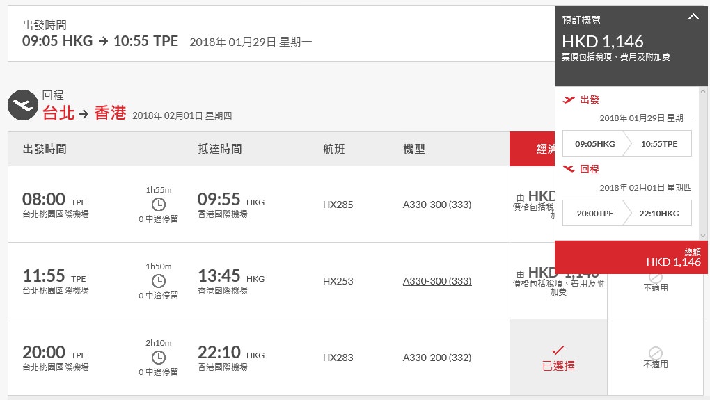 港航官網台北機票又有平,香港 飛台北 2人同行每人HK$760起 (連稅每人HK$1,112起),部份日子仲可以早機去晚機返,而且chech過五一有平,可以請3放6,另外佛誕、七一都有呢個價,港航已包機上餐飲及20kg行李寄艙,出發日期至7月12日。