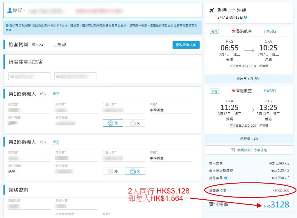永安旅遊 聖誕優惠,訂 2人同行 來回日本/韓國/泰國 機票滿HK$1,800(未連稅),每單即減HK$200,折實後 ANA 大阪 每人HK$2,160(連稅HK$2,627)、港航 沖繩 每人HK$1,240(連稅HK$1,564)、韓亞 首爾 每人HK$1,370(連稅HK$1,839)、大韓 首爾 每人HK$1,532(連稅HK$1,989)、泰航 曼谷 每人HK$1,030(連稅HK$1,479),優惠至12月26日止。