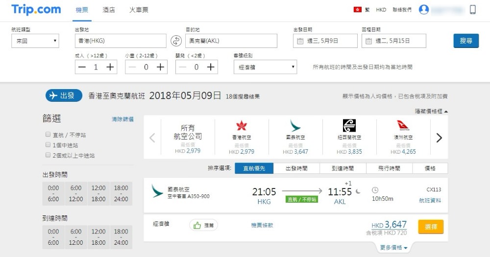 國泰 飛新西蘭繼續有平,香港 直航 新西蘭-奧克蘭 (Auckland)HK$2,927起(連稅HK$3,647),國泰已包23kg行李寄艙,出發日期同為5月至6月中,留意6月已經入左雨季,去南島果邊玩會少雨D。