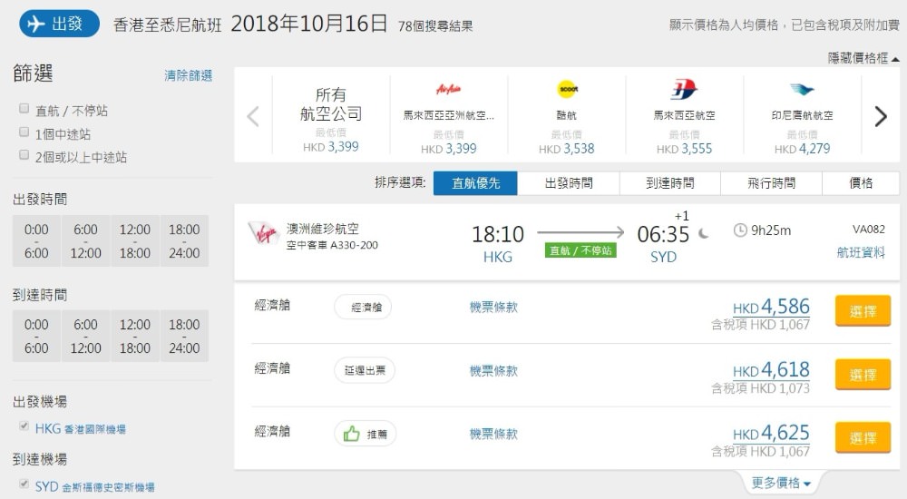 維珍澳洲出左 香港至悉尼新航線 ,宜加開賣左,價錢仲平過澳航幾百,香港飛悉尼 HK$3,519起(連稅 HK$4,586),出發日期為8至12月,暑假旺季出發都有平,維珍已包2年23kg行李同餐飲。