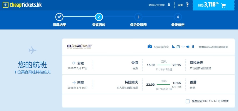 Cheaptickets.hk訂機票:(連稅HK$3,718)