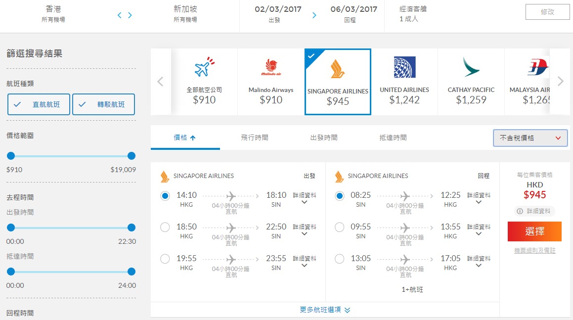 新加坡航空 又出左限時優惠,香港飛新加坡 每人HK$945起,連稅HK$1,392,2月至4月出發,新航已包30kg行李,仲有星級服務+機上娛樂,價錢比上次限時優惠雖然貴左HK$50左右,但仍然吸引,優惠至1月20日。