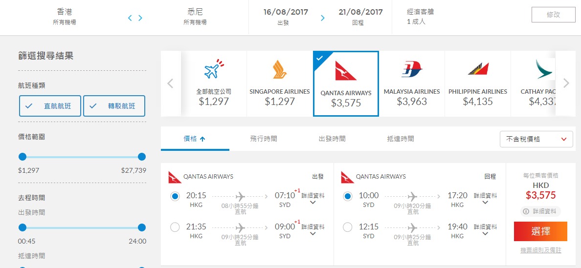 澳洲航空出左早鳥優惠,香港飛澳洲HK$3,575起,連稅布里斯班HK$$4,548、悉尼HK$$4,572、墨爾本HK$$4,497、阿德萊德HK$$4,714,直航價唔洗5千好吸引,出發日期為2月至10月底,仲要8月份暑假旺季都有平,優惠可以open jaw,如悉尼入,布里斯班出。