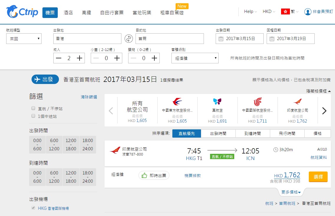 2人同行,香港飛首爾HK$1,364,可坐787夢幻客機+20kg行李寄艙 – 印度航空