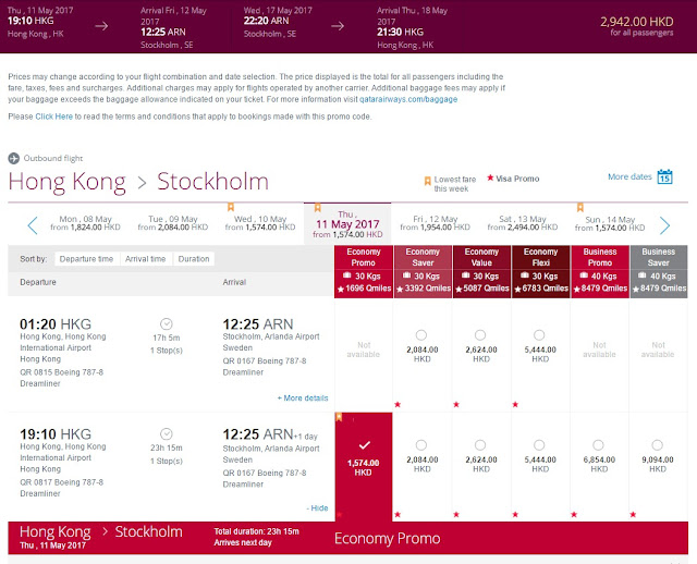 卡塔爾航空 Qatar Airways 推出左個85折碼,只要輸入優惠碼並用Visa卡付款,即享85折,仲係1人成行,比之前2人同行仲平。香港出發至歐洲 來回連稅最平斯德哥爾摩HK$2,942起、日內瓦HK$3,326起、馬德里HK$3,359起、比薩HK$3,402起、阿姆斯特丹HK$3,409起、米蘭HK$3,421起、巴黎HK$3,667起…,12月中前出發,優惠可以open jaw,如羅馬入境,米蘭返港。