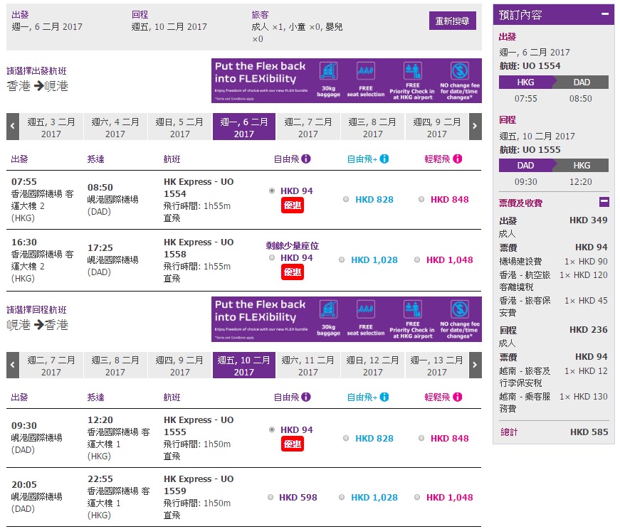 HK Express今日(1月13日) 出左Happy Friday優惠,香港飛峴港 單程HK$94,來回連稅HK$585起,7月中前出發,優惠只限今日,幾次峴港Happy Friday都係差唔多價錢,有興趣可以上官網睇睇。