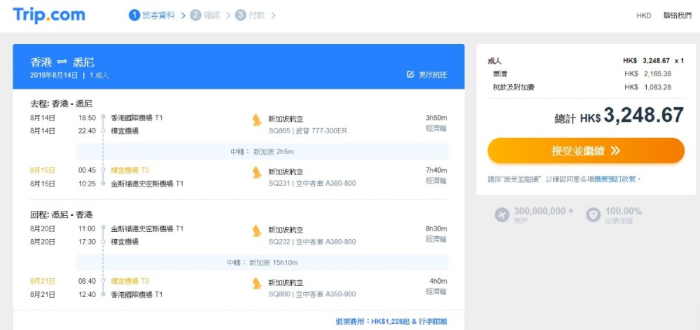 Trip.com網址:(連稅HK$3,249)
