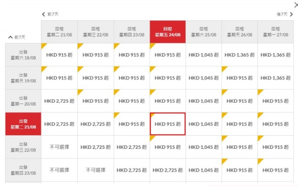 台北 HK$530 (連稅HK$915)