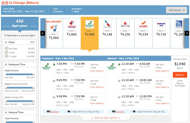 11-12月開航優惠,香港飛 芝加哥 連稅三千二 – 長榮航空