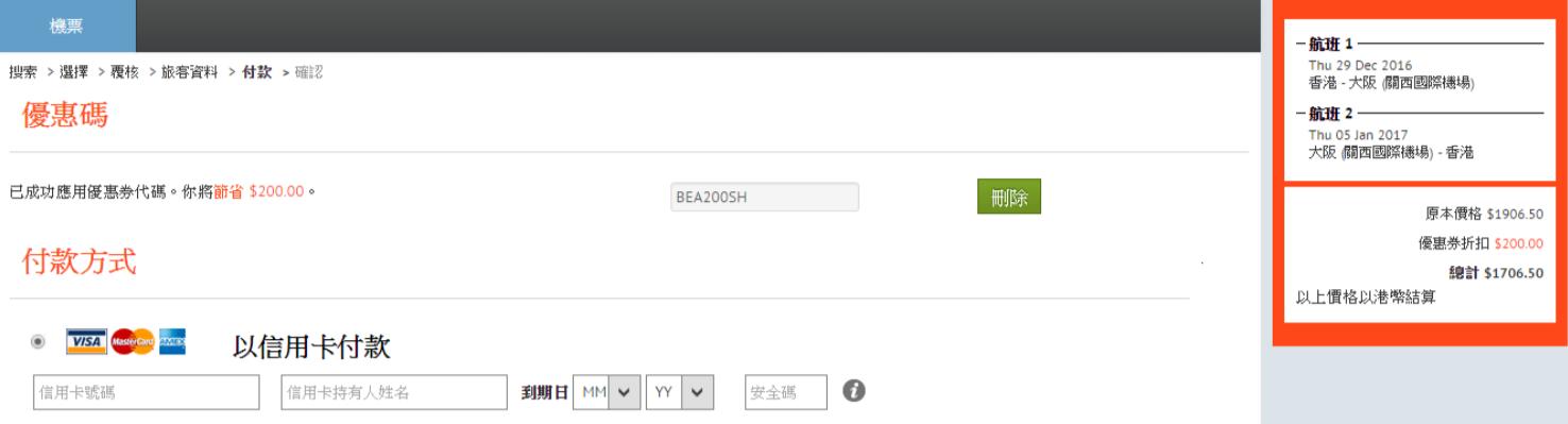 付款前輸入優惠碼