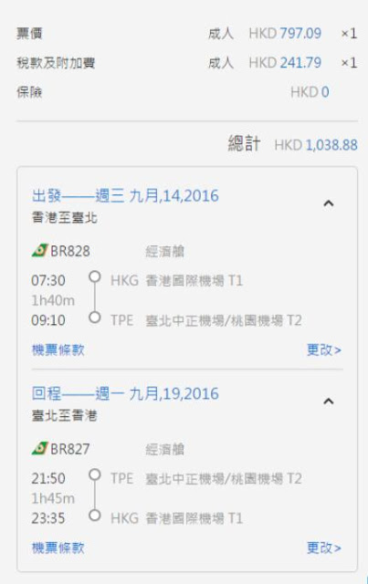 香港往返台北