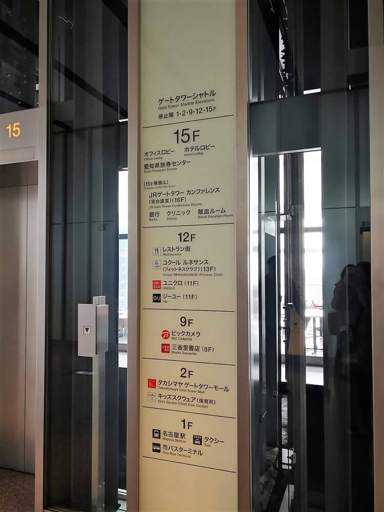 JR「各古屋」駅櫻通口旁邊有電梯上大堂,如果由中部機場坐名鐵出市區,需由名鐵駅行大概5分鐘