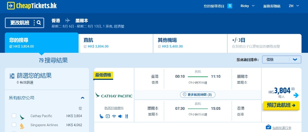 墨爾本 HK$1,737起(連稅 HK$3,804)