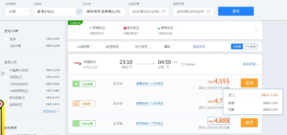 英鎊呢幾日大跌至4個半月低位,仲唔plan下去英國玩下,英航 又有直飛 倫敦優惠,香港直航倫敦-希斯路機場 HK$3,085起(連稅HK$4,888),唔洗五千真係好抵,呢個價已包23kg行李寄艙,如果唔要行李寄艙,可以再平三百左右,出發日期至明年3月中,優惠航班適用於逢日至四出發。