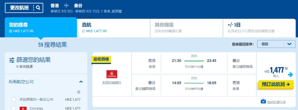 泰國好抵飛!香港飛 曼谷 $820起,25kg行李 – Emirates 阿聯酋航空