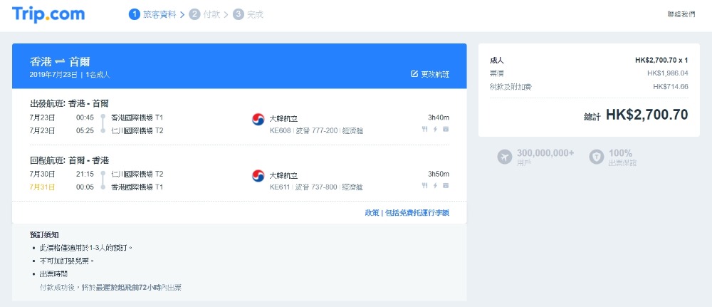 【官方網頁】www.koreanair.com(連稅HK$2,752)