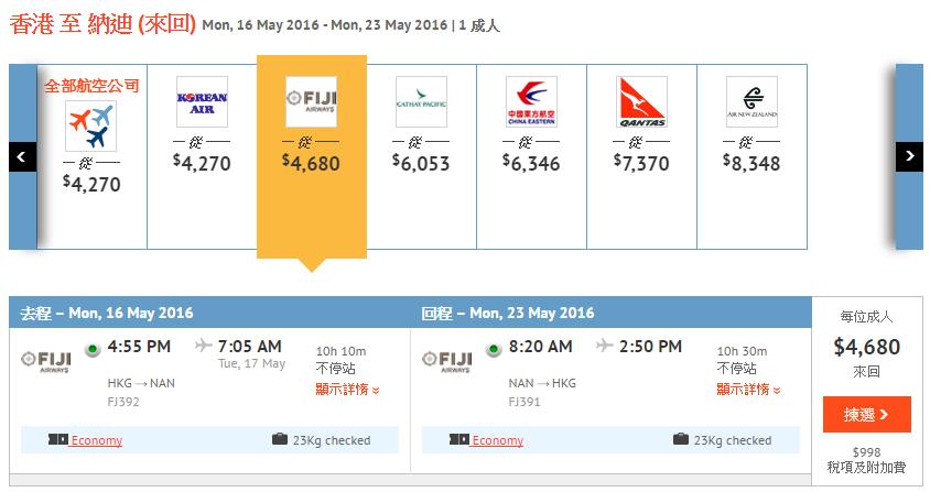 香港直飛斐濟楠迪HK$4,680(東亞咭減HK$500,連稅 HK$5,170)