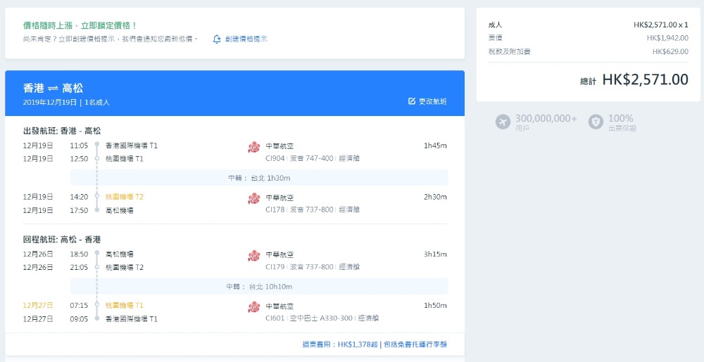 華航 經台北飛日本近期幾抵,啱啱仲搵到跨聖誕平飛,香港 經台北飛四國-高松 只係HK$1,942起(連稅HK$2,571),check過12月19/20去,12月26/27日返都有平,仲可以Stopover玩埋台北,華航已包左30kg行李寄艙,想聖誕去四國自製下烏冬或者玩藍染可以考慮。
