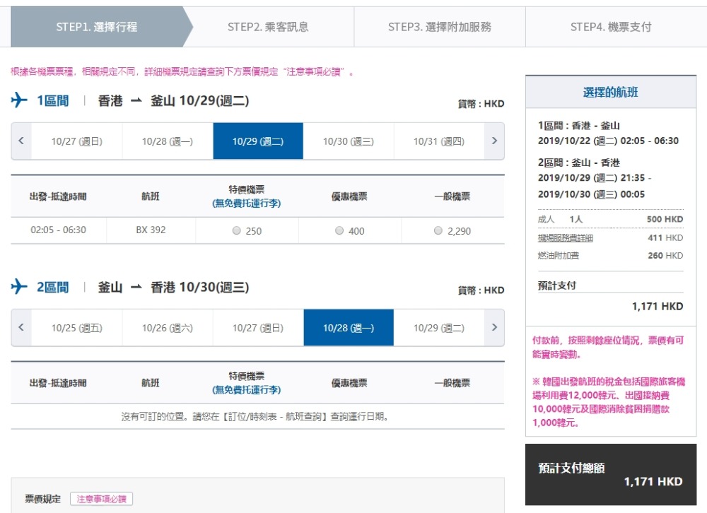 釜山航空 AirBusan 今日都出左限時優惠,限10月份出發,香港飛釜山 單程HK$250起(來回連稅HK$1,171),澳門 飛釜山 單程MOP250(來回連稅MOP1,176),價錢同上次限時優惠差唔多。優惠票價不包寄艙行李,15kg每程$294。