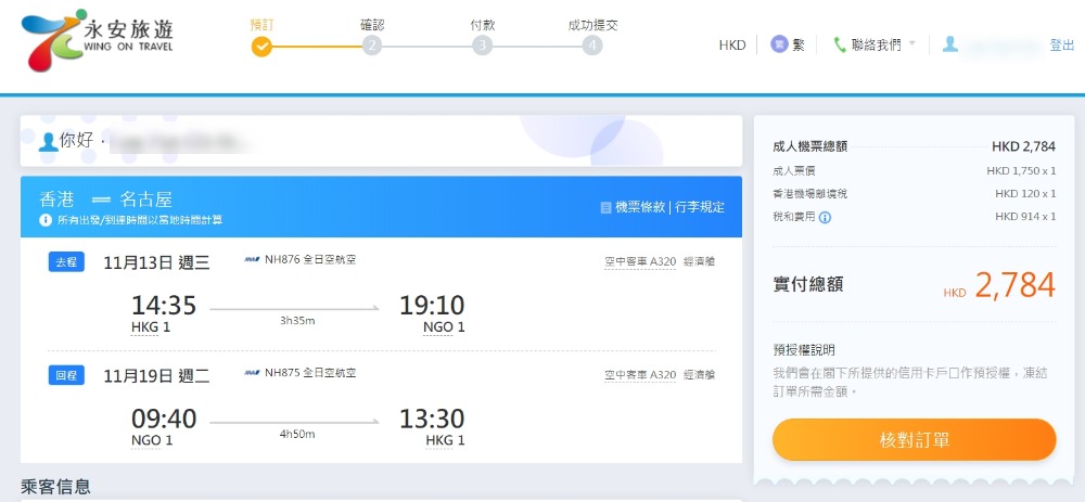 【訂購日期】即日至2019年9月30日 【出發日期】 2019年11月1日至12月19日、2020年1月7日至1月20日、1月30日至3月31日、4月16日至4月21日、5月11日至5月31日 (名古屋) 2020年1月6日至1月20日、1月30日至3月31日 、4月16日至4月21日、5月7日至5月31日(大阪) 2019年12月1日至12月16日、2020年2月9日至3月31日、4月16日至4月21日、5月11日至5月31日(東京成田) 2019年12月1日至12月16日、2020年2月9日至3月31日、4月14日至4月21日、5月11日至5月31日(東京羽田) 【停留期限】3-10日 【訂購網址】www.wingontravel.com(名古屋HK$2,784) 【官方網頁】www.ana.co.jp(名古屋HK$2,834)