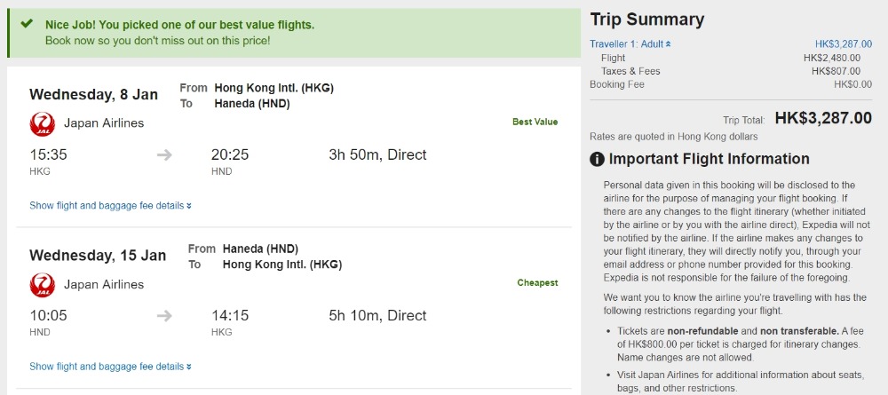 日航 JAL 今個月減左燃油附加費,變相又平左,香港 來回 東京成田/羽田機場 HK$2,480起,連稅羽田HK$3,287、成田HK$3,291,出發日期至明年3月底,平飛集中星期一至四出發,航班時間仲可以早機去晚機返,幾抵玩,日航仲已包2件23kg行李寄艙。
