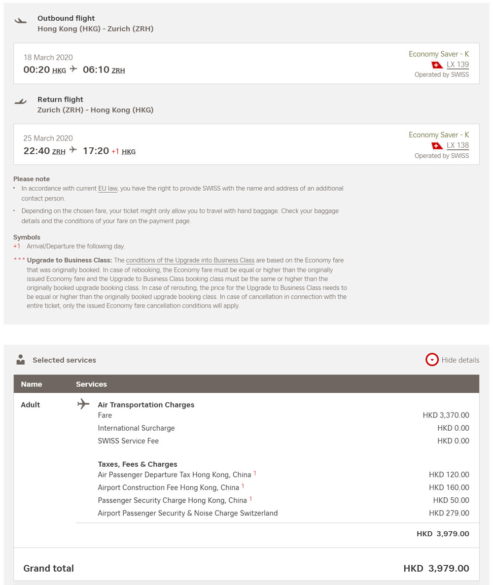 蘇黎世 HK$3,370起(連稅HK$3,979)
