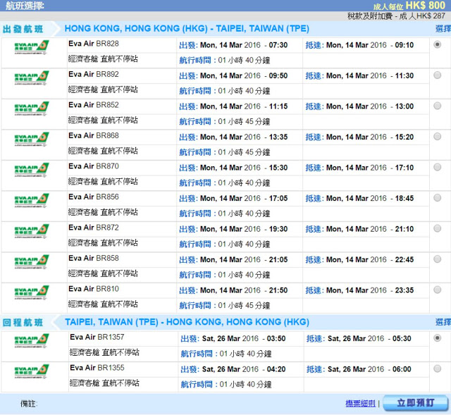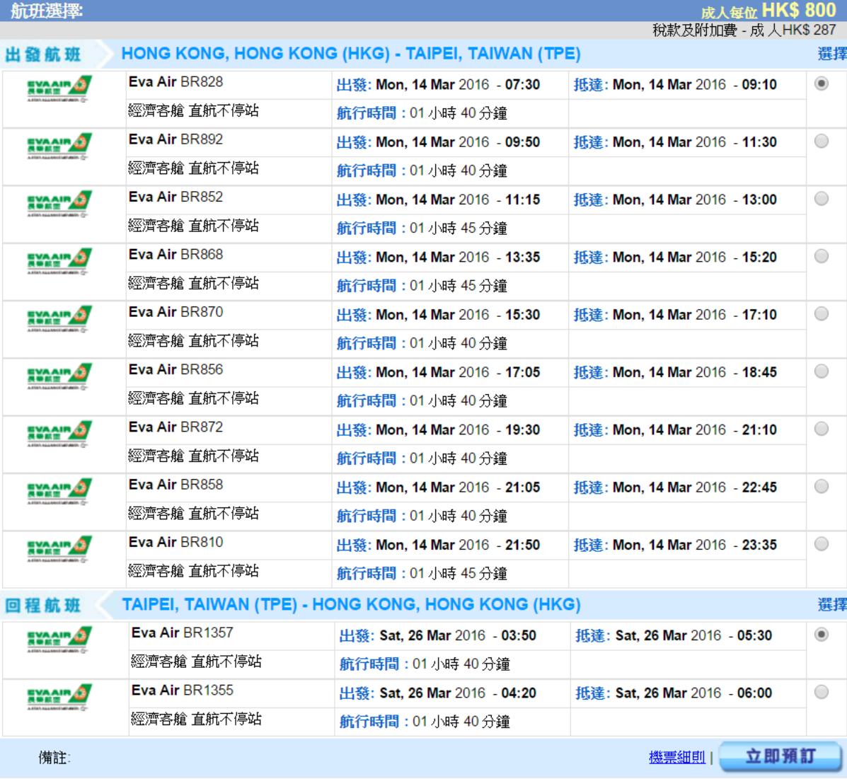復活節前後仲有加班機,長榮航空 香港飛台北HK$800起。