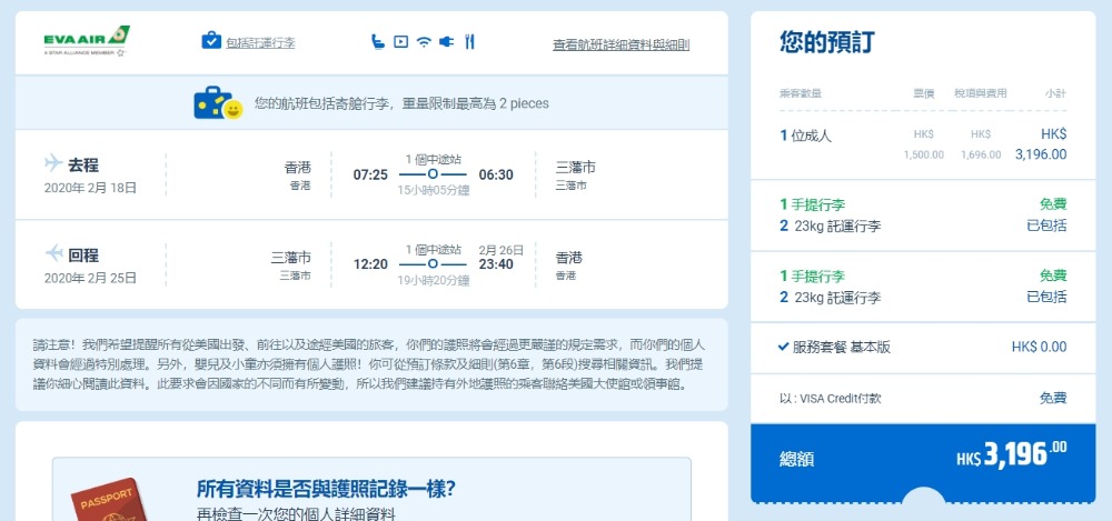 以上價錢已包2件23kg寄艙行李及機上餐飲