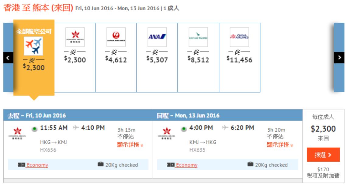 來回 HK$2,300起,回贈後HK$2,200(連稅HK$2,370)