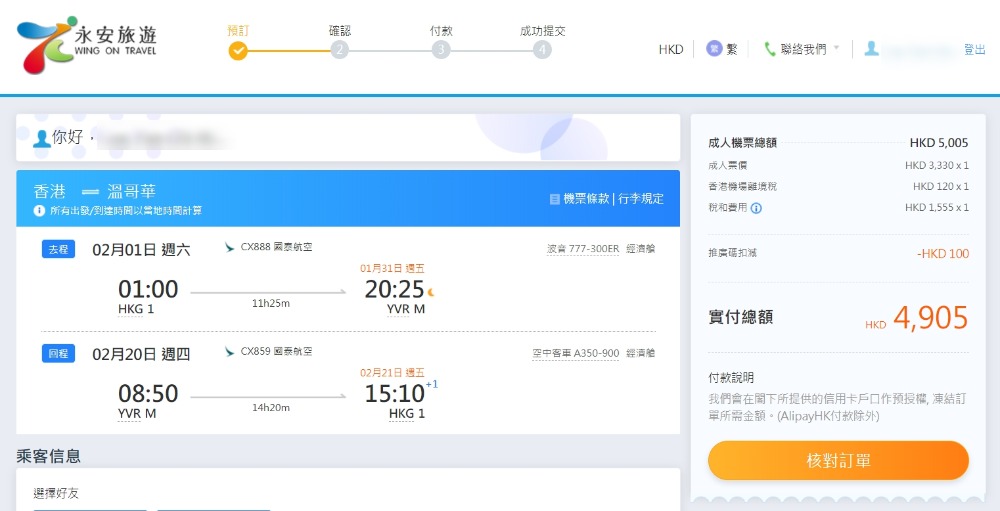 於永安旅遊付款前輸入優惠碼