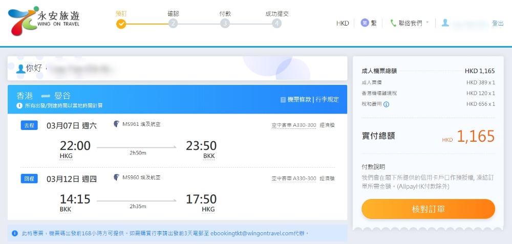 埃及航空 出到3月前出發優惠,香港 來回 曼谷 HK$389起(連稅HK$1,166),比之前再平多幾十蚊,埃航已包23kg行李寄艙,逢二/四/六有航班,可以星期六快閃出發,星期二返都係請一日假,航班時間都算唔錯,可以晚機去下午機返。