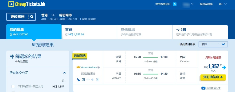 【訂購日期】即日至2020年3月31日 【出發日期】2020年6月1日至9月24日 【停留期限】1個月 【訂購日期】www.cheaptickets.hk(胡志明市HK$1,357) 【官方網頁】www.vietnamairlines.com(胡志明市HK$1,390)