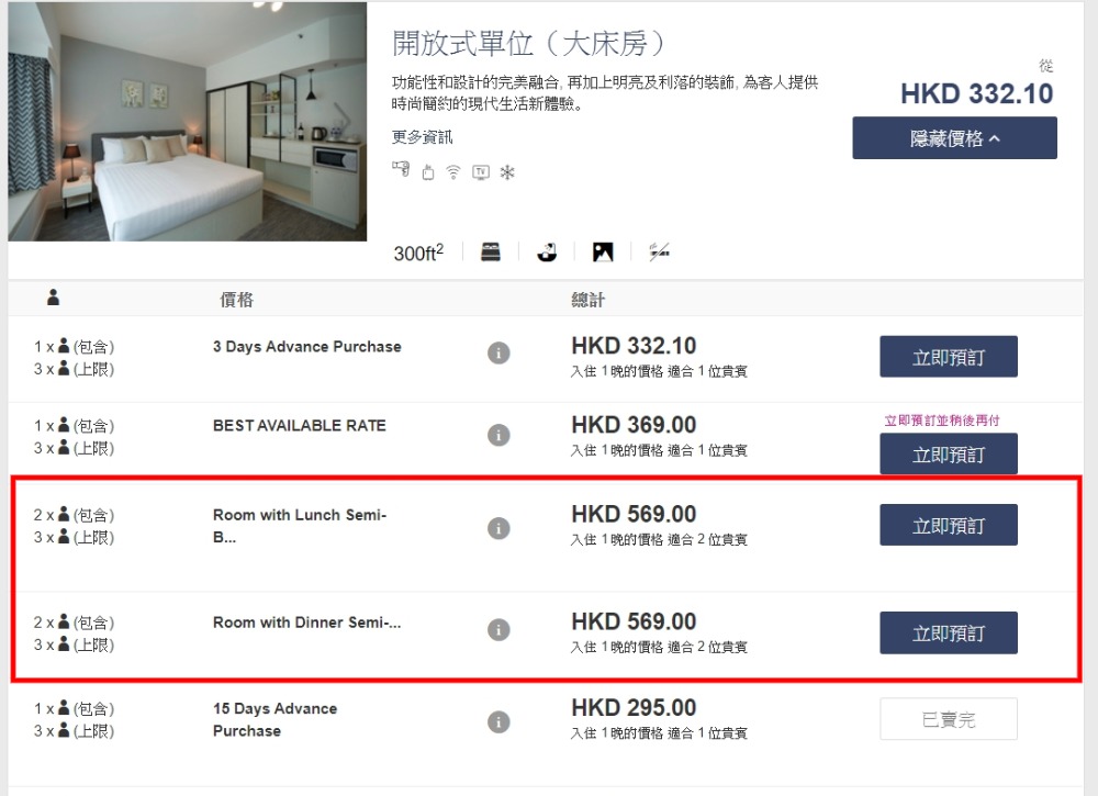 開放式客房+半自助餐 每晚連稅HK$569起