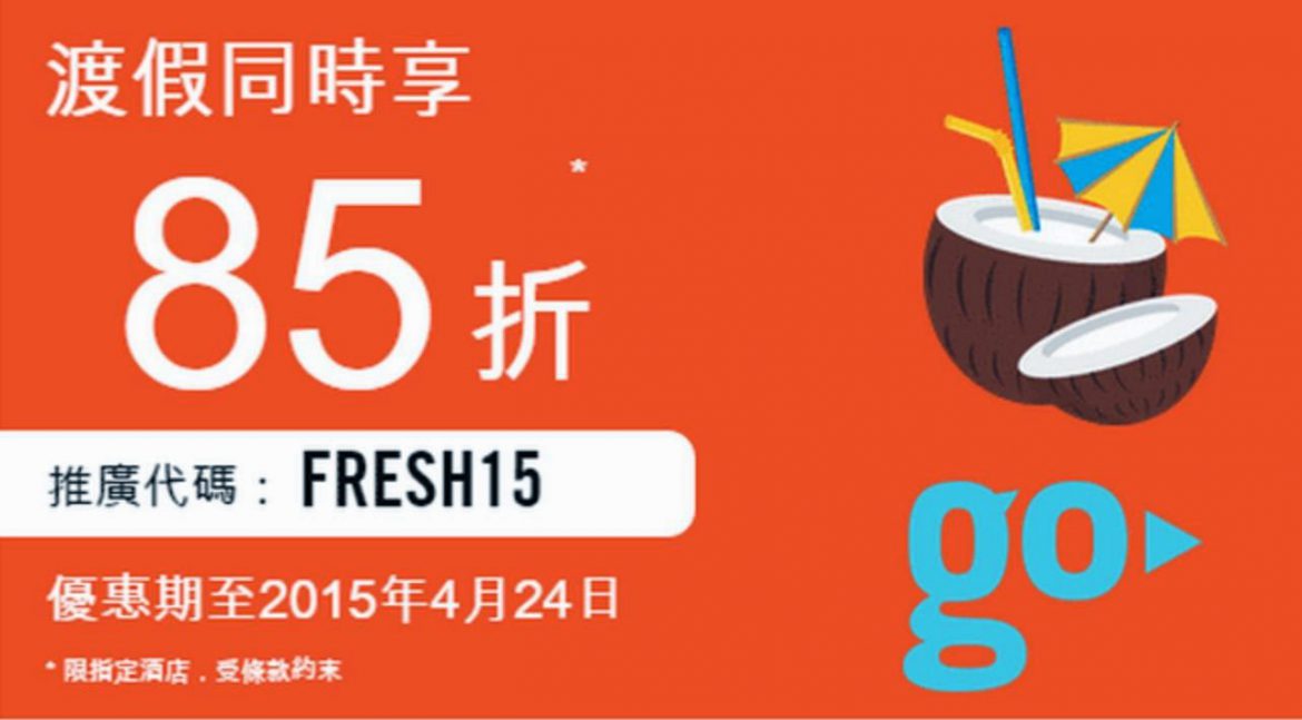 Ratestogo 85折優惠碼【FRESH15】2015年12月31日前入住