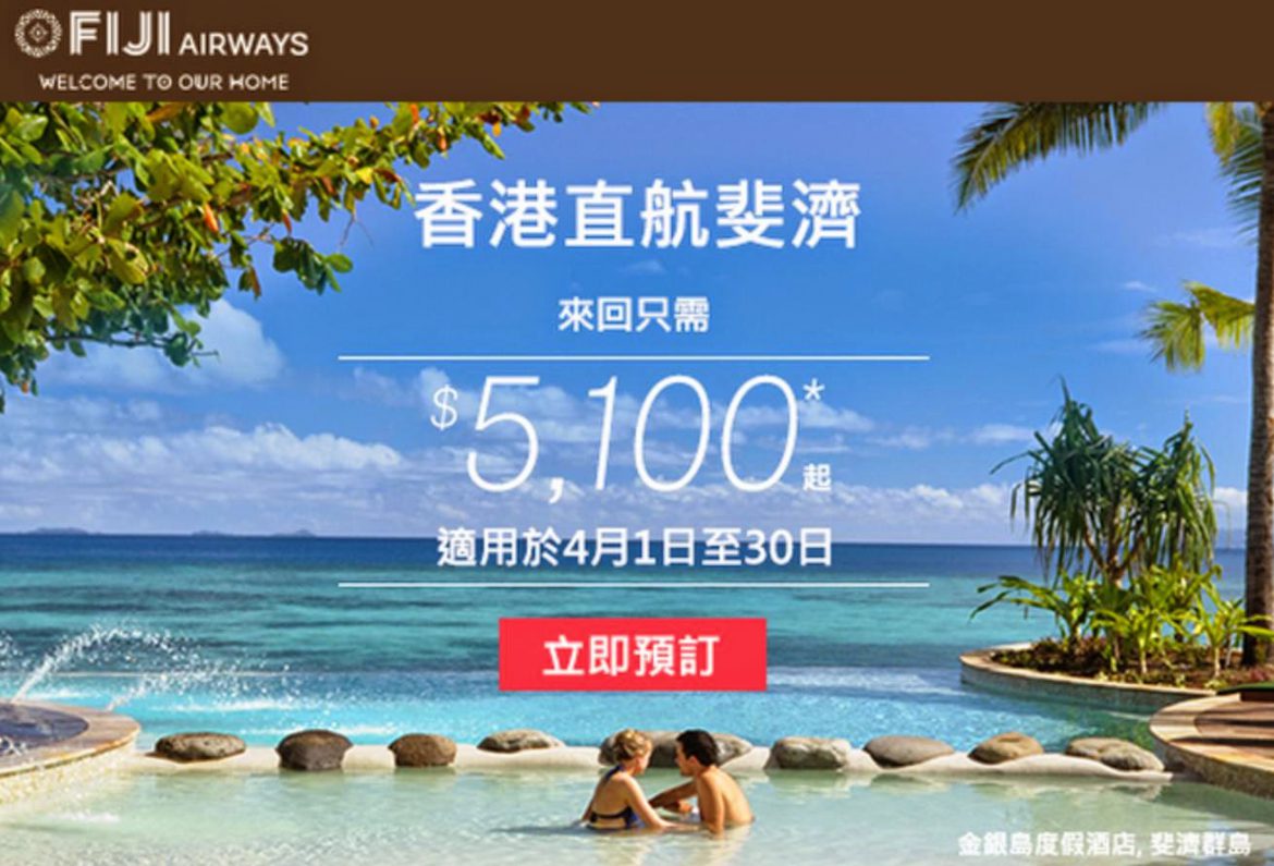 香港直航去斐濟,非「斐濟航空」莫熟,國泰班機都由斐濟航空營運,價錢仲要貴$200幾,今次出左新優惠,$5,150起,比其要中轉的航空公司仲平$1,500以上。