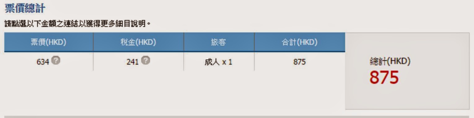 香港往返台北/高雄/台南 $550起(連稅$875)