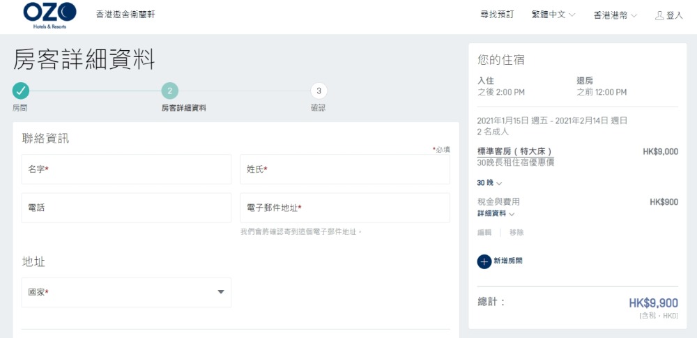 - 遨舍套房 (OZO Suite):連稅HK$18,000起