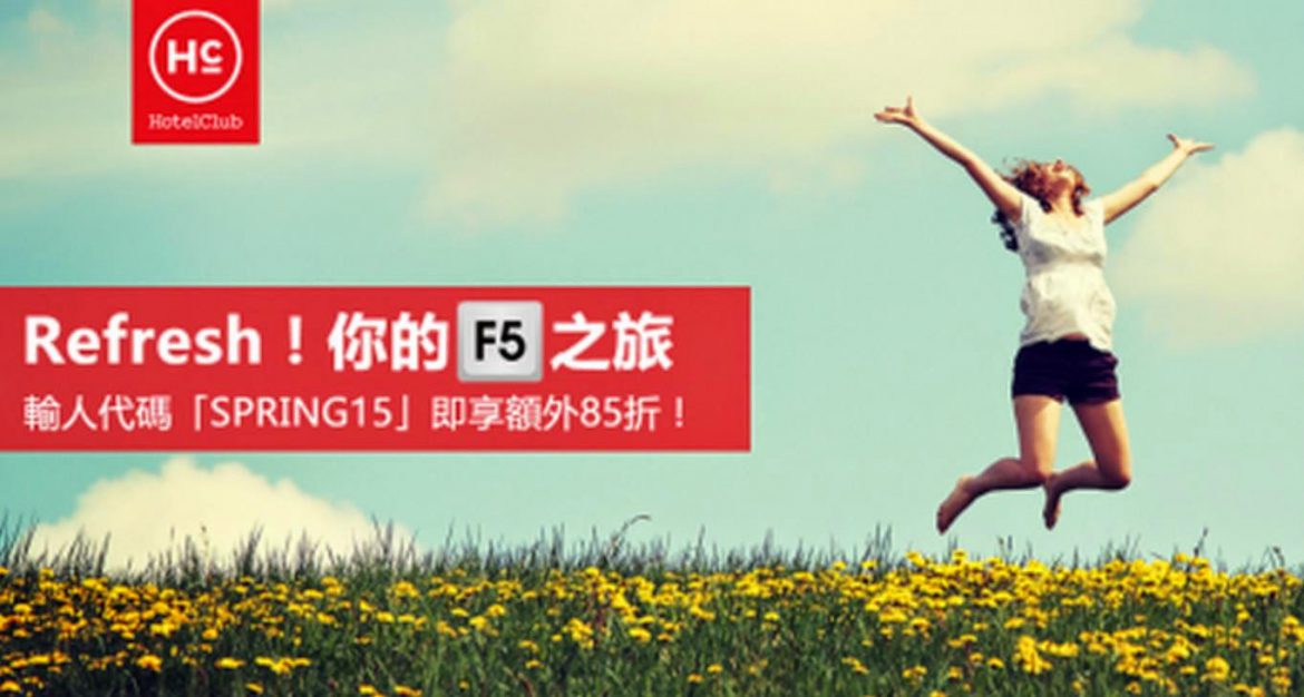 Hotelclub將會於今日(3月10日)下午6時「從開」SPRING15折扣碼 Discount Code,訂酒店同樣可享額外85折。