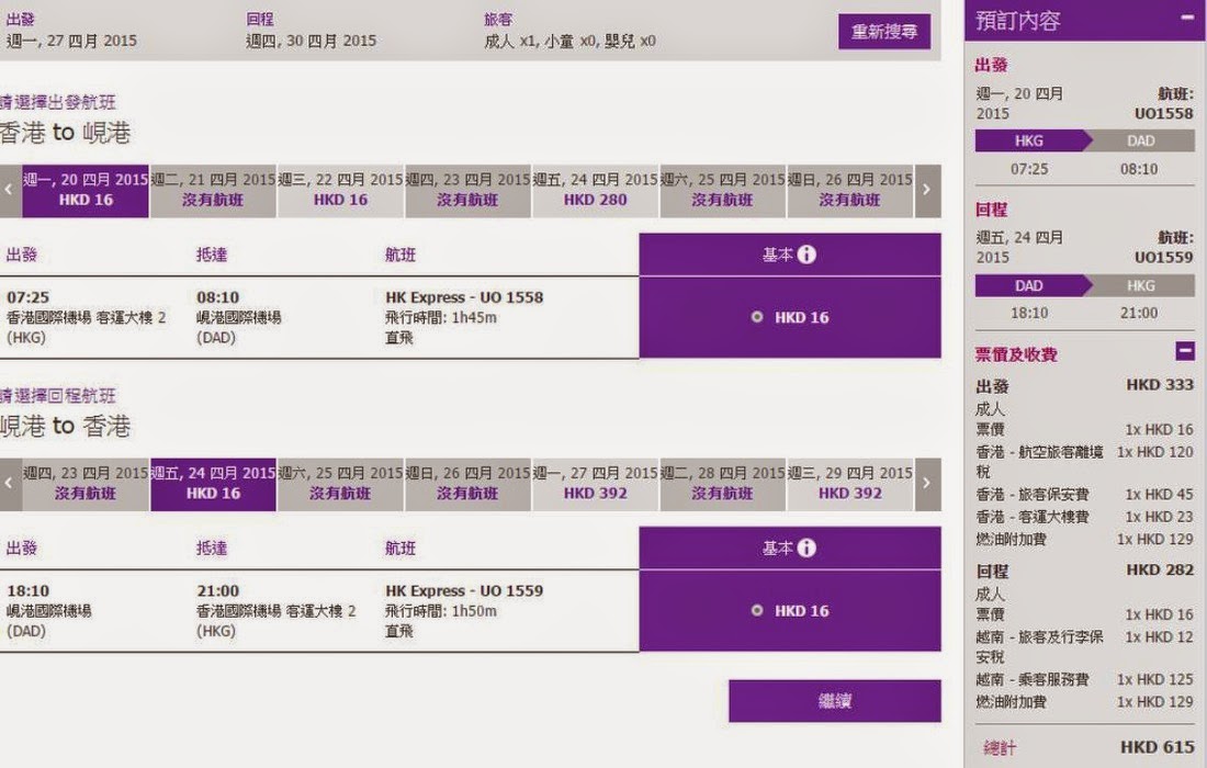 HK Express之前公佈左新航點越南4大城市之一「峴港」,今日突然開賣,並將於4月1日首航,想去峴港睇古績同陽光海灘,就唔好錯過。