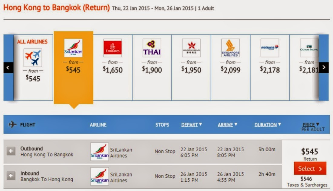 又係斯里蘭卡航空,今次仲係直航機,香港飛曼谷來回機位$545(連稅$1,091),不過只限1月22日晚出發26日返,都可玩返4日。