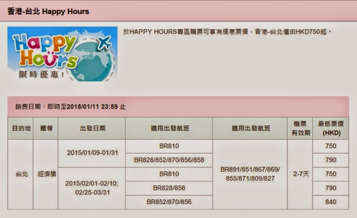 今個星期長榮航空又有新優惠,今次都係2015年1月至3月份出發。