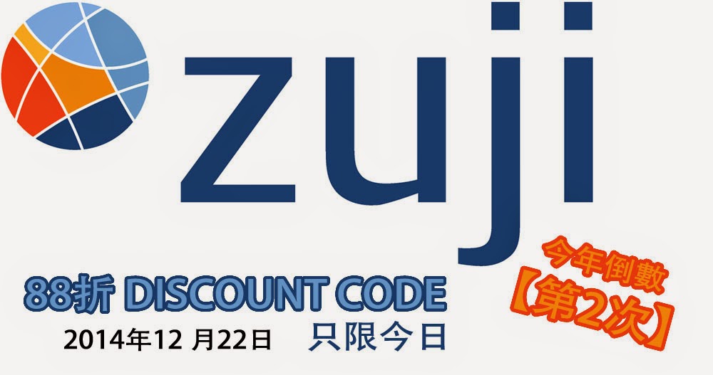 Zuji 今年倒數「最後2次」88折訂房優惠碼,只限今天(12月22日)使用。