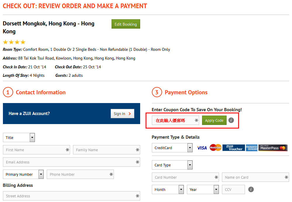 留意優惠代碼不適用於部份5星級連鎖酒店,
