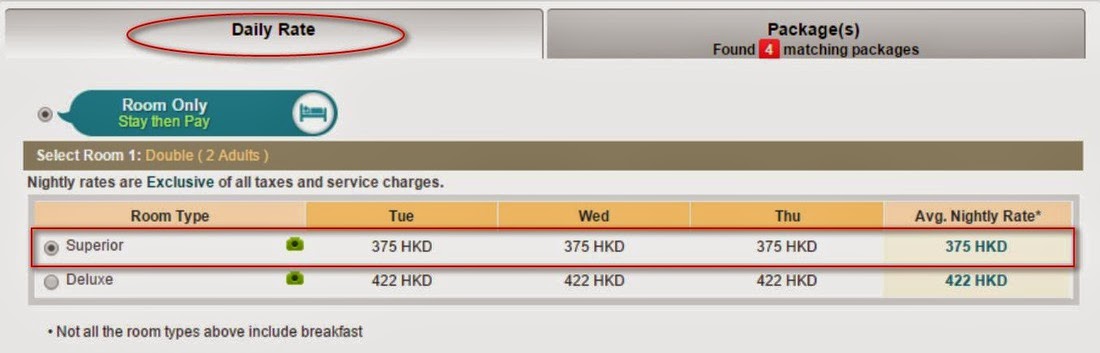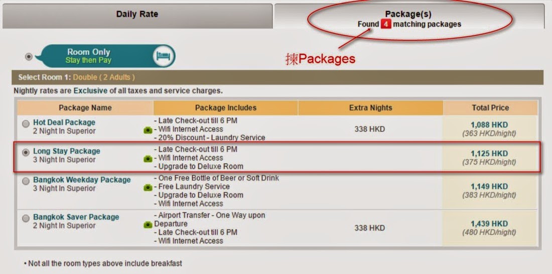 另外4間酒店免費upgrade,只需揀「Packages」,會見到「Long Stay Package」,即可免費升級房間;
