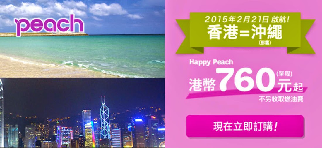 Peach樂桃琴日正式開賣香港飛沖繩機票,並於出年2月28日正式開航;