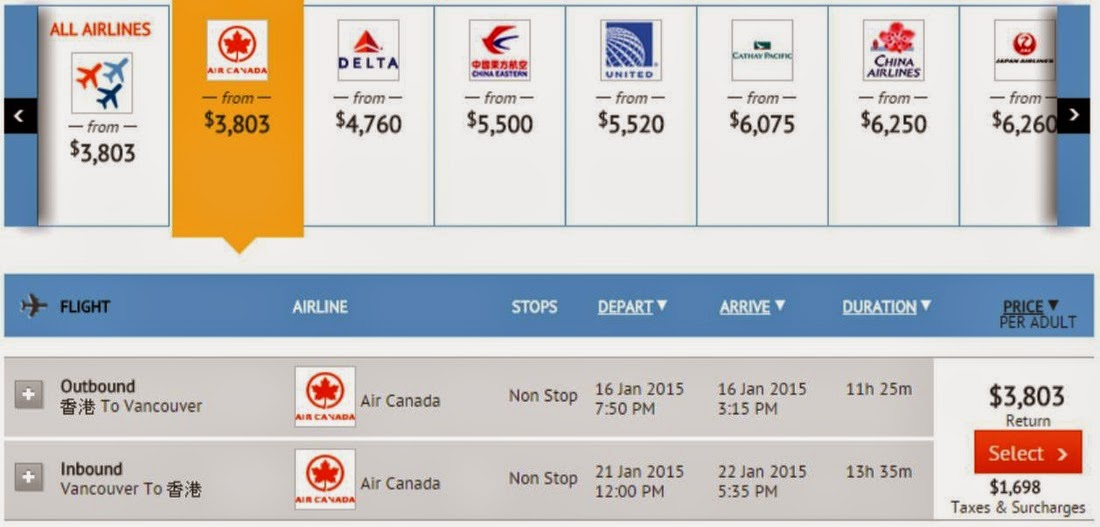 Zuji出左加拿大航空優惠,價錢仲平過官網成$2,000,明年1月至6月出發,1人成行。