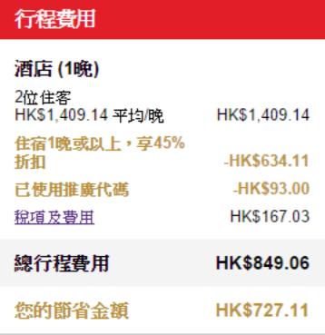 住宿1晚或以上,享43折扣,會員額外95