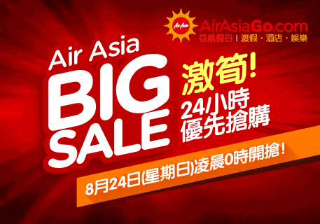 如果只想先訂機票,可以等多日到8月25日零晨(星期日晚),AirAsia都會做Big Sale,只供訂機票。